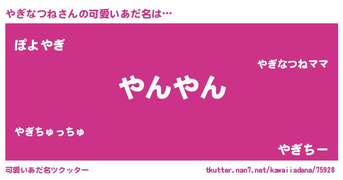| 恥ずかしいあだ名 | 『プリティーやぎなつね』『やぎっちょ』 |