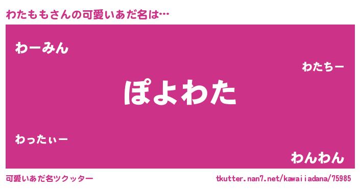 | 意味不明あだ名 | 『住所不定無職わたもも(2歳)』 |