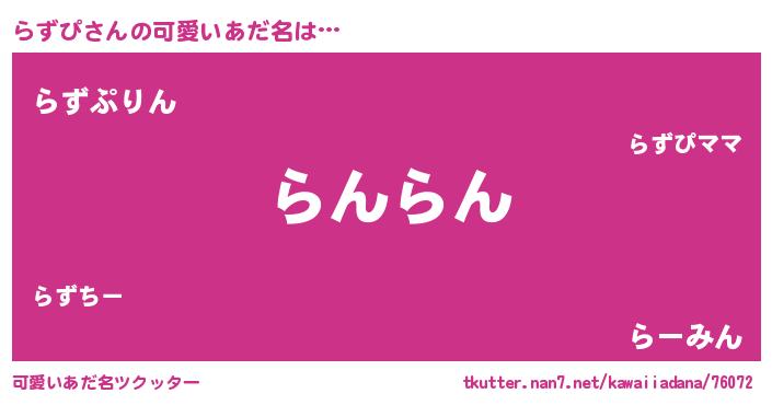 | 恥ずかしいあだ名 | 『プリティーらずぴ』『らずちん』 |