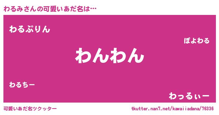 | 男性向けラノベタイトル風あだ名 | 『わるみの憂鬱』『はたらくわるみさま!』 |