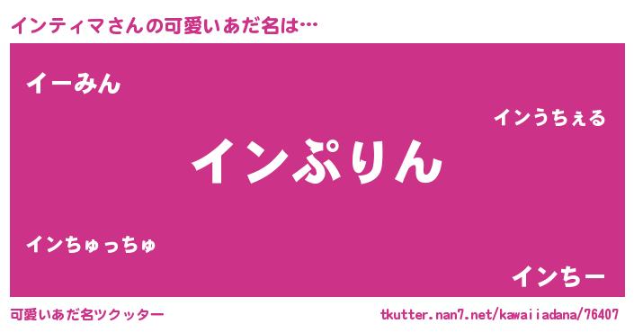 | 女子向けラノベタイトル風あだ名 | 『インティマの玉の輿計画!』 |