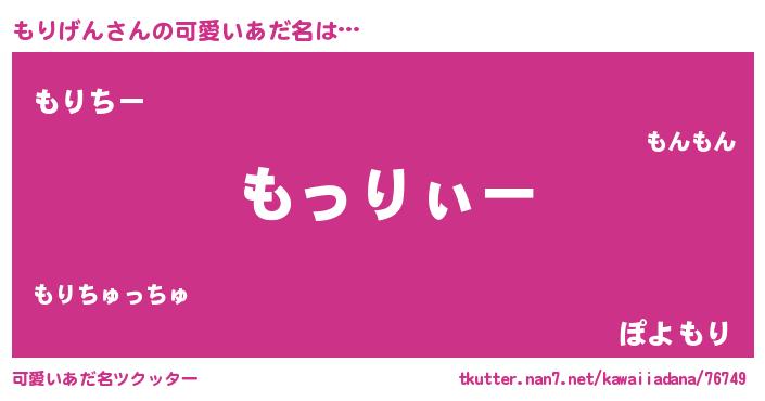 | 女子向けラノベタイトル風あだ名 | 『もりげんは平凡を望む』 |