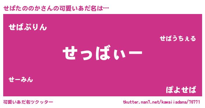 | 女子向けラノベタイトル風あだ名 | 『せばたののかの卵を拾いまして』 |