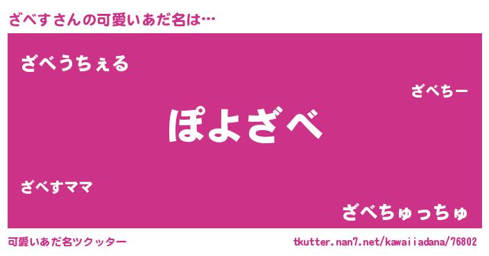 | 意味不明あだ名 | 『住所不定無職ざべす(1歳)』『自称ざべす』 |
