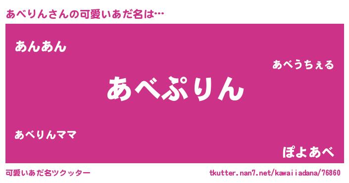| 男性向けラノベタイトル風あだ名 | 『転生したらあべりんだった件』 |