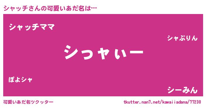 | 男性向けラノベタイトル風あだ名 | 『シャッチの嫁は女の子じゃないと思った?』 |