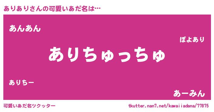 | ヘコむあだ名 | 『ありもー』『豆乳』『ありあり(爆)』 |