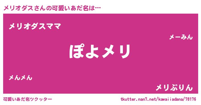 | ポケモン風あだ名 | 『メーリイ』『ゼニメリ』『メリゴンZ』 |