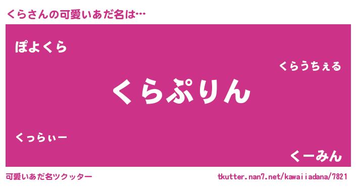 | 意味不明あだ名 | 『たけのこ科くら属』『自称くら』 |