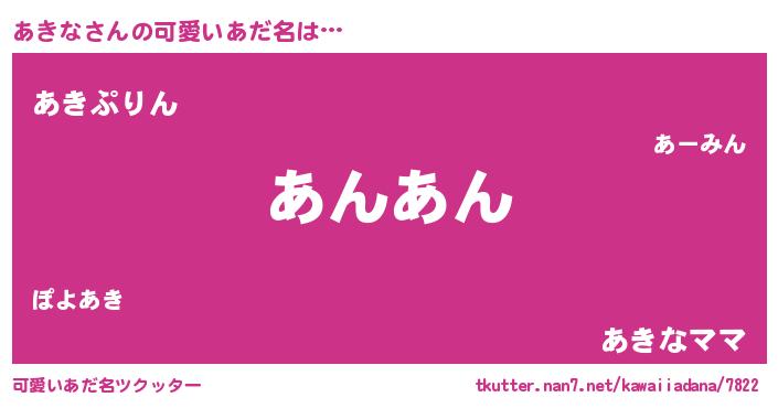| 意味不明あだ名 | 『ペロリンあきな』『ニラ科あきな属』 |