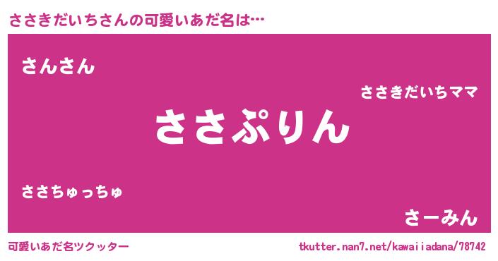| 恥ずかしいあだ名 | 『プリティーささきだいち』『ささちん』 |