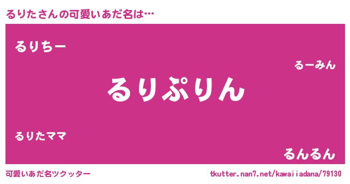 | 男性向けラノベタイトル風あだ名 | 『ルリタスレイヤー』『るりたの憂鬱』 |