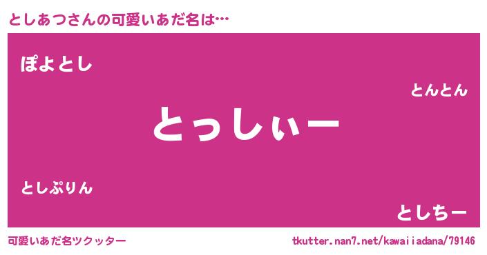 | 男性向けラノベタイトル風あだ名 | 『としあつの嫁は女の子じゃないと思った?』 |