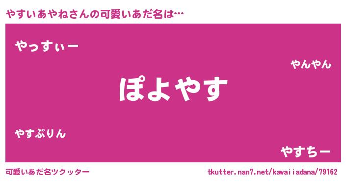 | ポケモン風あだ名 | 『ヤースイ』『ヒヤスイアヤネ』 |