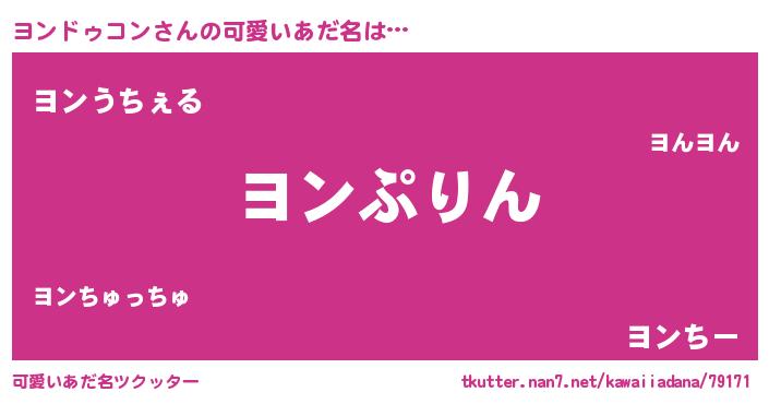 | 男性向けラノベタイトル風あだ名 | 『ヨンドゥコン~年齢イコール彼女いない歴の魔法使い~』 |