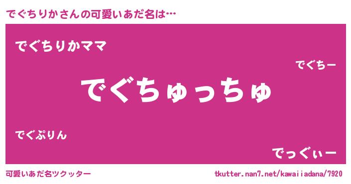 | ヒーロー風カッコイイあだ名 | 『天空の使者でぐちりか』『黄金騎士デグ』 |
