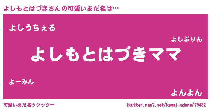 | 恥ずかしいあだ名 | 『よしちん』『ヨシモトハヅキデラックス』 |