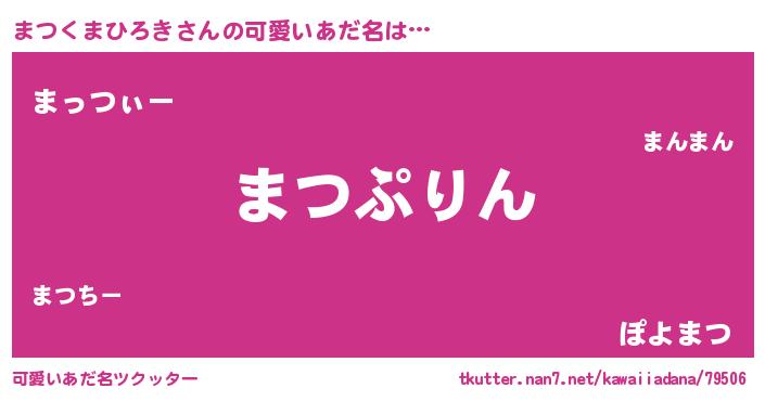 | 男性向けラノベタイトル風あだ名 | 『まつくまひろき~年齢イコール彼女いない歴の魔法使い~』 |