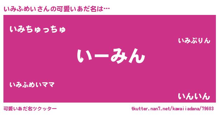 | ヘコむあだ名 | 『いみにー』『いみふめい(笑)』 |