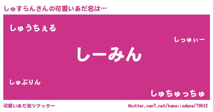| ヘコむあだ名 | 『しゅっ子』『しゅもー』『豆乳』 |