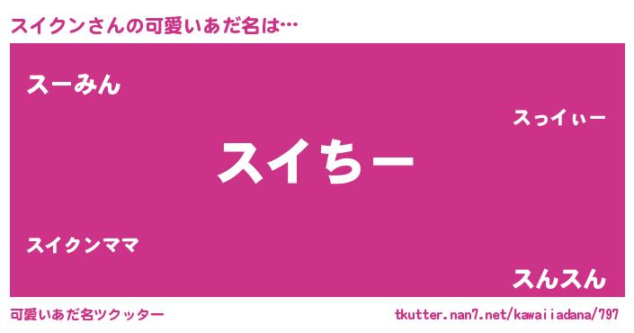 | 恥ずかしいあだ名 | 『スイっちょ』『プリティースイクン』 |
