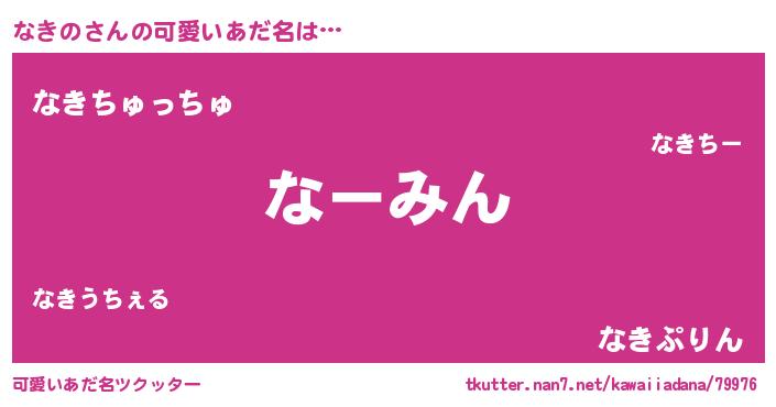 | ヒーロー風カッコイイあだ名 | 『慈愛の使者なきの』『究極戦士ナキノ』 |