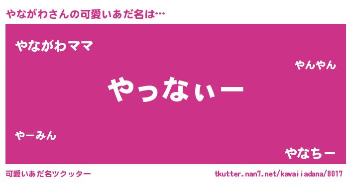 | 女子向けラノベタイトル風あだ名 | 『やながわの卵を拾いまして』 |