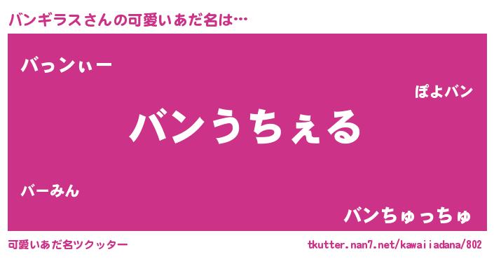 | ヘコむあだ名 | 『バンっちょ』『バンギラス(爆)』 |
