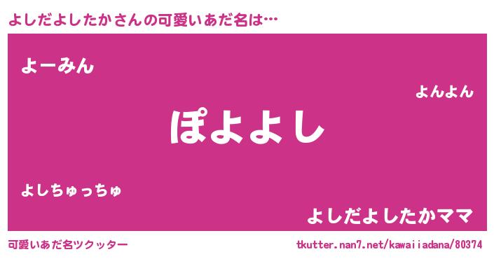 | ヘコむあだ名 | 『よしだよしたか(小並感)』『よしっふぃ~』 |