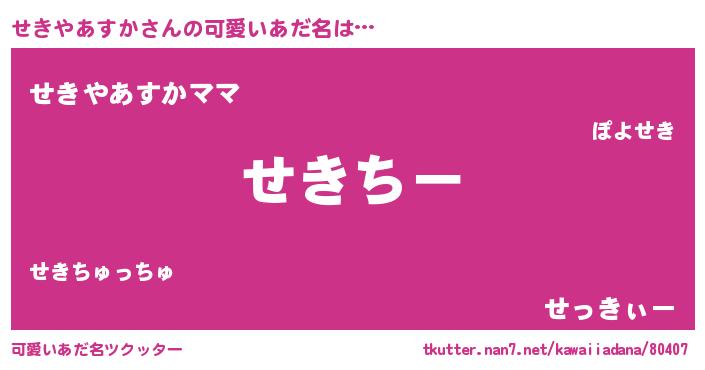 | 男性向けラノベタイトル風あだ名 | 『せきやあすかに滅ぼされるだけの簡単なお仕事です』 |