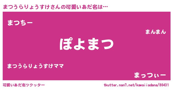 | 意味不明あだ名 | 『住所不定無職まつうらりょうすけ(59歳)』 |