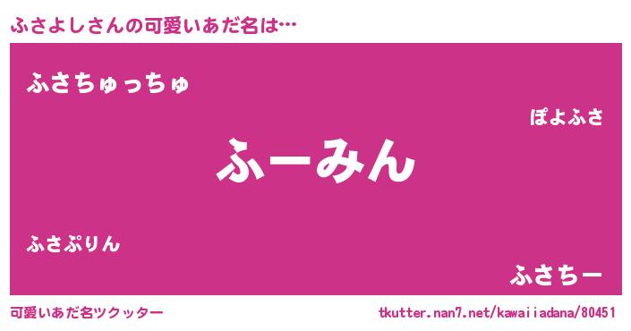 | ヘコむあだ名 | 『豆乳』『ふさぷりん』『ふさふぇ~』 |