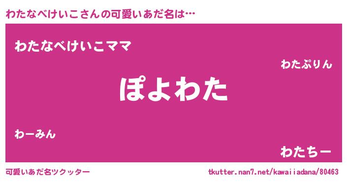 | ヘコむあだ名 | 『わたなべけいこ(笑)』『なまこ酢』 |