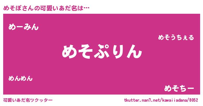 | 意味不明あだ名 | 『エリンギ科めそぽ属』『自称めそぽ』 |