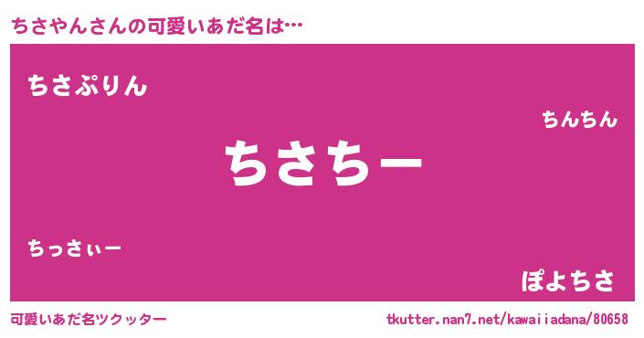 | 女子向けラノベタイトル風あだ名 | 『ちさやんの雑貨屋さん』 |