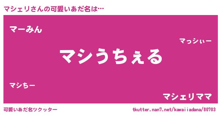 | ヘコむあだ名 | 『マシェリ(笑)』『マシぷりん』 |
