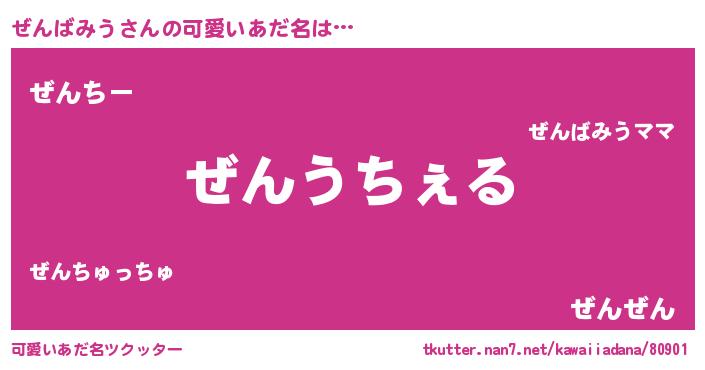 | 意味不明あだ名 | 『自称ぜんばみう』『ペロリンぜんばみう』 |