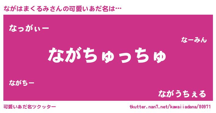 | ヘコむあだ名 | 『ながお』『豆乳』『ながっふぃ~』 |