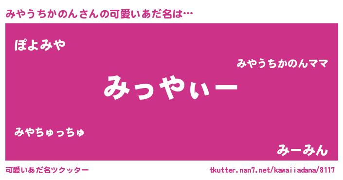 | 男性向けラノベタイトル風あだ名 | 『みやうちかのんの嫁は女の子じゃないと思った?』 |