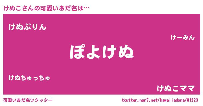 | ヘコむあだ名 | 『けぬこ(笑)』『けぬにー』『牛乳』 |