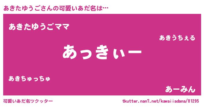 | ポケモン風あだ名 | 『ヒアキタユウゴ』『ゼニアキ』 |