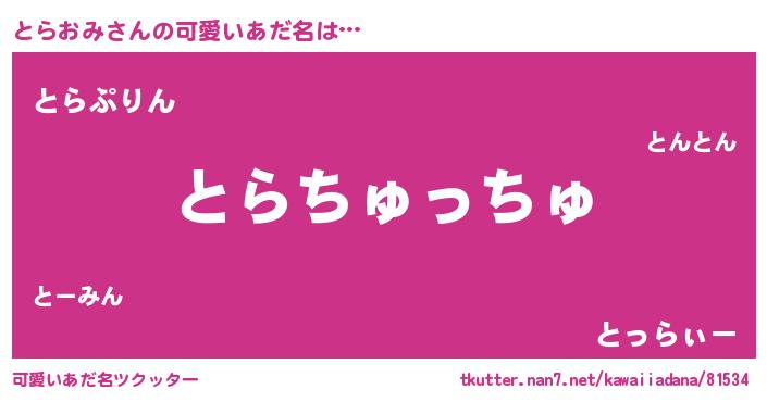 | 女子向けラノベタイトル風あだ名 | 『とらおみ夫妻のなれそめ』 |