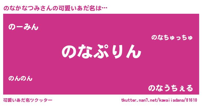| 男性向けラノベタイトル風あだ名 | 『転生したらのなかなつみだった件』 |