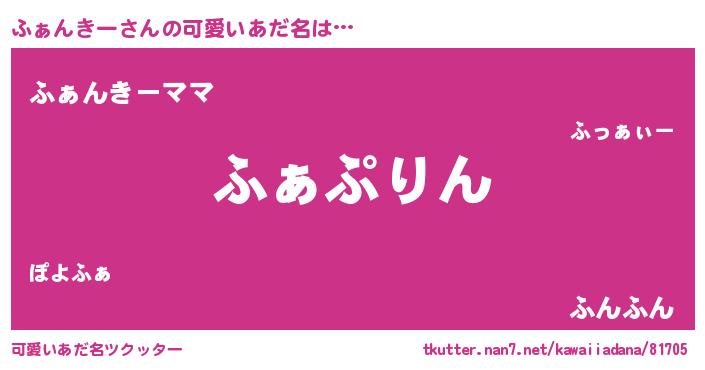 | ヘコむあだ名 | 『ふぁんきー(震え声)』『ふぁにー』 |