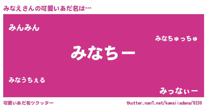 | 意味不明あだ名 | 『みなえフォーエバー』『ペロリンみなえ』 |