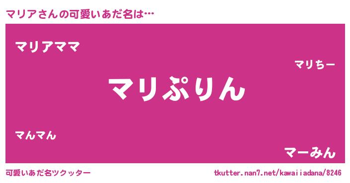 | ヘコむあだ名 | 『マリア(笑)』『豆乳』『マリにゅー』 |