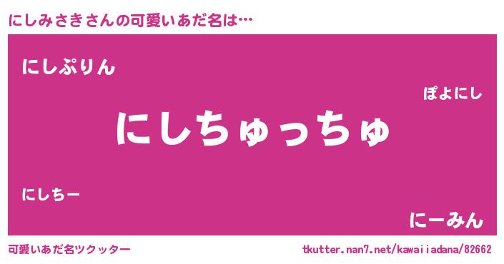 | 男性向けラノベタイトル風あだ名 | 『おまえをオタクにしてやるから、俺をにしみさきにしてくれ! 』 |