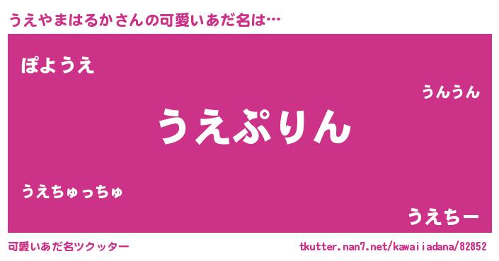 | 男性向けラノベタイトル風あだ名 | 『うえやまはるか~年齢イコール彼女いない歴の魔法使い~』 |
