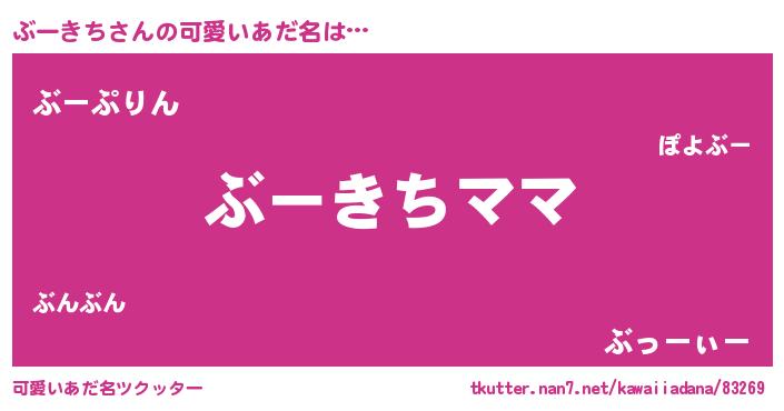 | 意味不明あだ名 | 『永久保存ぶーきち』『ペロリンぶーきち』 |