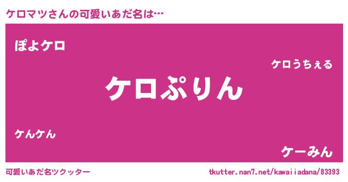 | ヒーロー風カッコイイあだ名 | 『仮面ケロダー』『最強戦士ケロマツ』 |